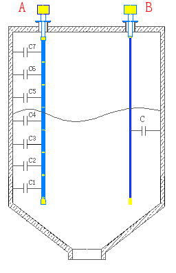 BCLA系列智能多段导纳物位计,是新一代智能化物位检测仪表。我们创造性地将传感器分成多个结构尺寸相同(或固定比例)的测量段(如右图A)。通过不断循环测量、比较各段的导纳值,自动修正由于物料参数变化引起的误差。